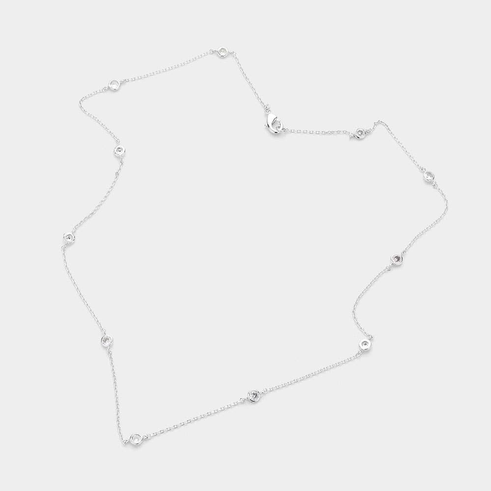 Elevate your everyday style with this dainty station necklace featuring evenly spaced CZ stones on a fine chain. Perfect for layering or wearing solo, this minimalist piece adds a subtle sparkle to any look.