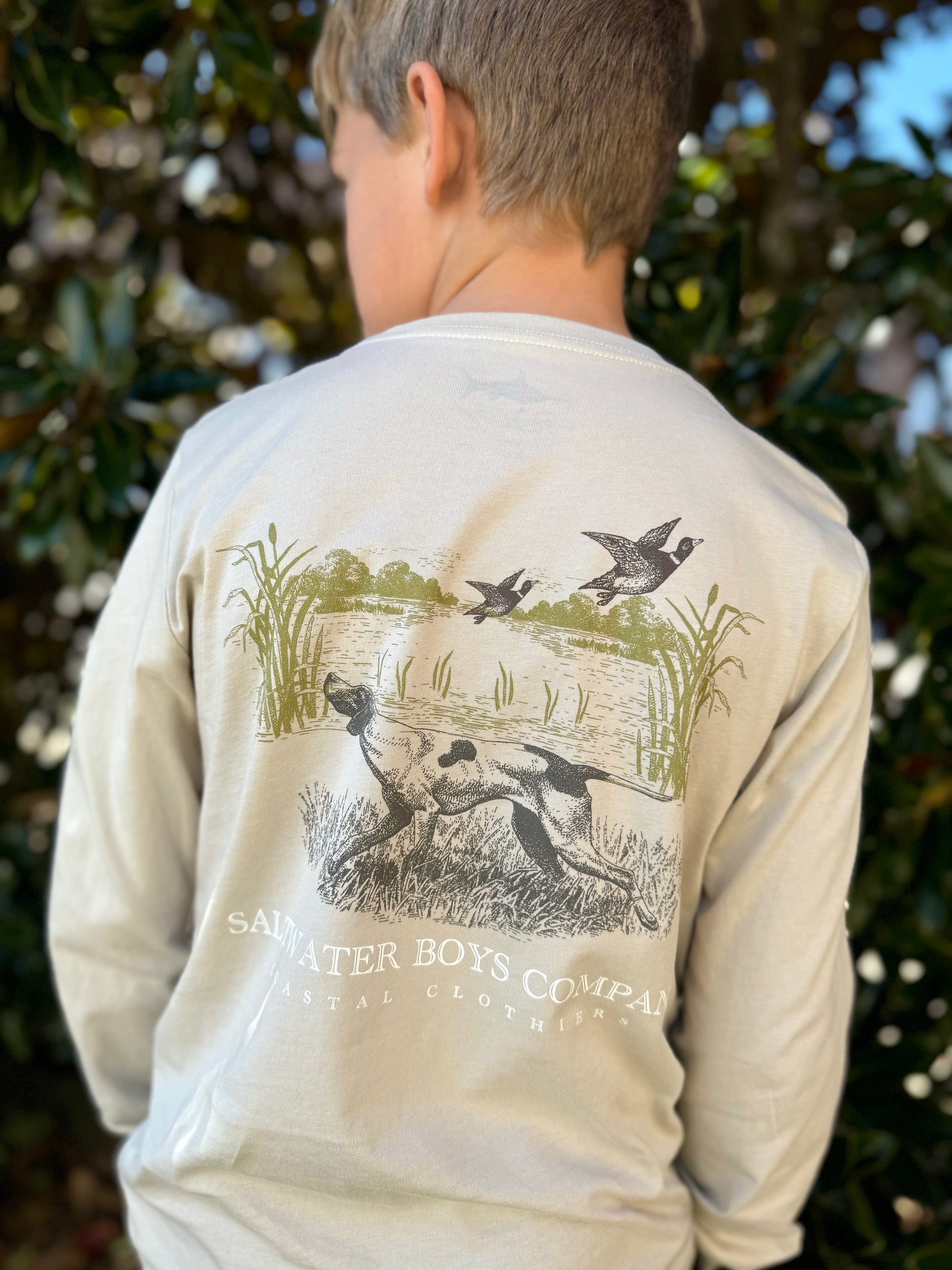 Go on an adventure with boy's best friend in our playful Hunting Dog Long Sleeve Graphic Tee. Featuring a bird dog design, this tee is perfect for those who love the great outdoors (and their faithful furry companion). * 100% Peruvian Cotton