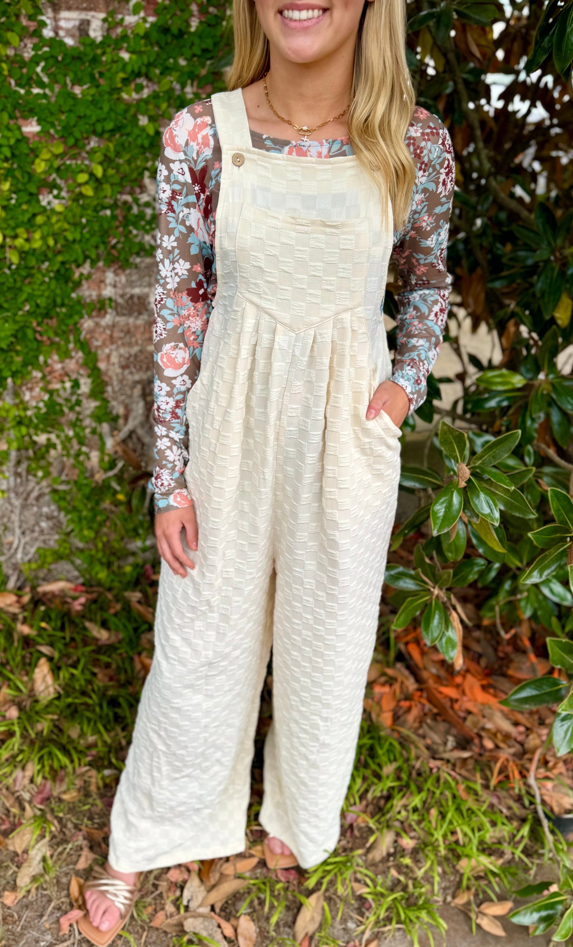 IVORY CHECKED JUMPSUIT