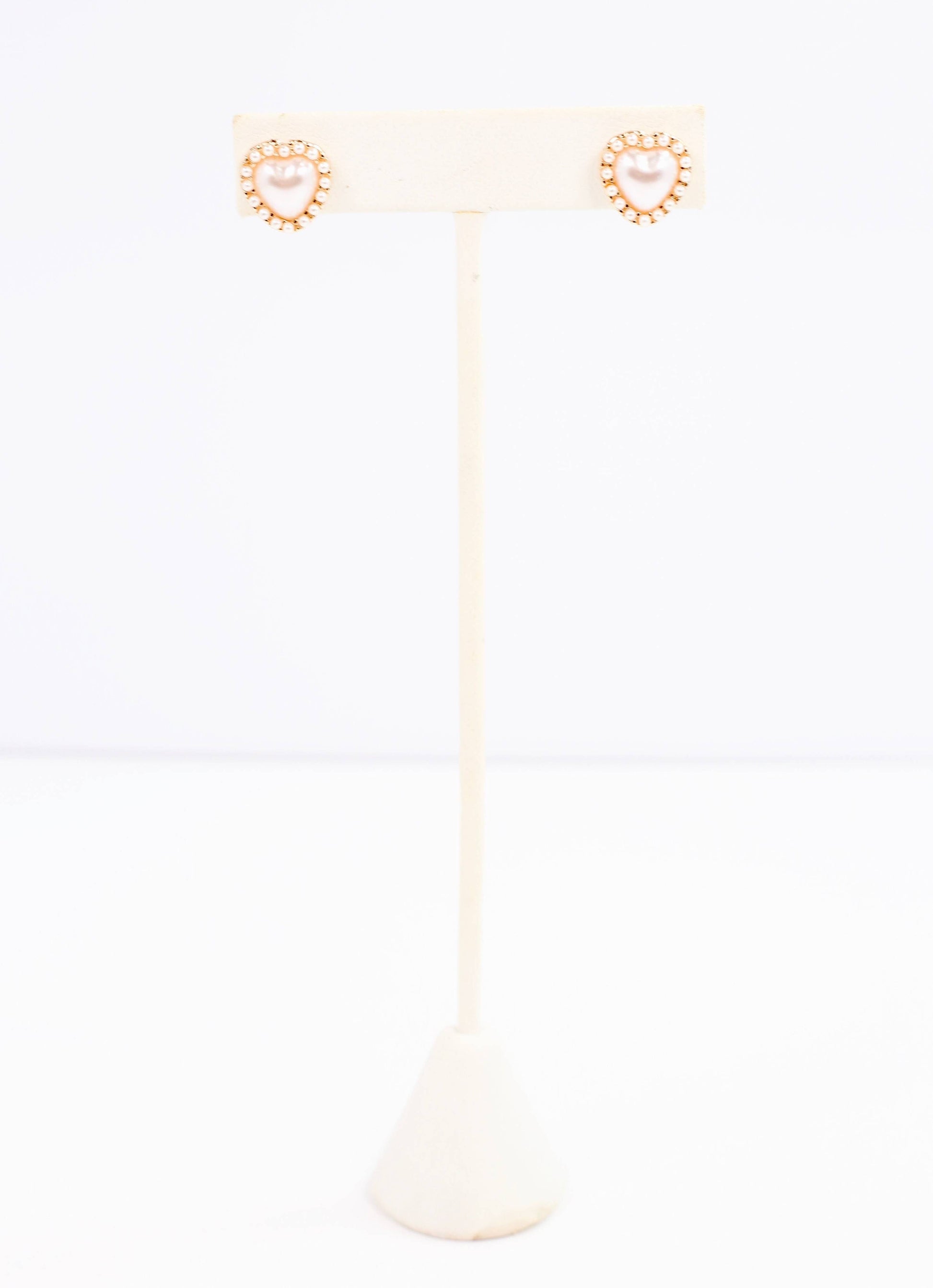 This heart shaped pearl has a classy look and is outlined in petite pearls on a post back. It's a precious earring to pair with any look.
