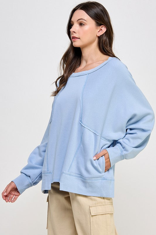 OVERSIZED PATCH PULLOVER: SKY BLUE