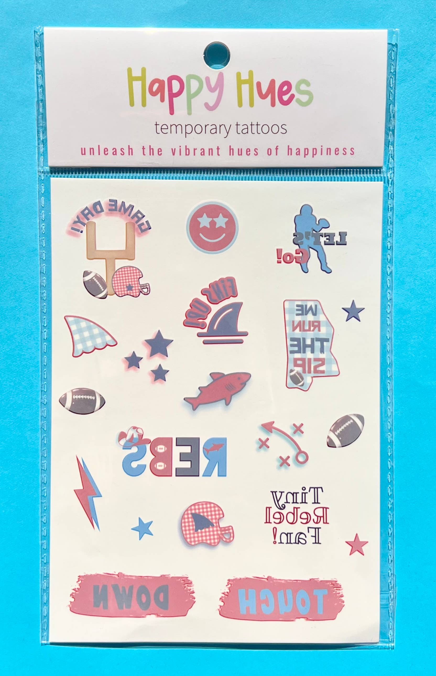 Get ready to show your team spirit with these Shark Game Day temporary tattoos! Each 5x7 sheet features a variety of fun and fierce shark-themed designs that are perfect for game day. Whether you're cheering on your favorite team or heading to a sports event, these temporary tattoos are a great way to add some extra flair to your game day outfit. Easy to apply and remove, these tattoos are a fun and easy way to show your support for your team. Get your hands on these Shark Game Day temporary tattoos and let your fandom shine!
